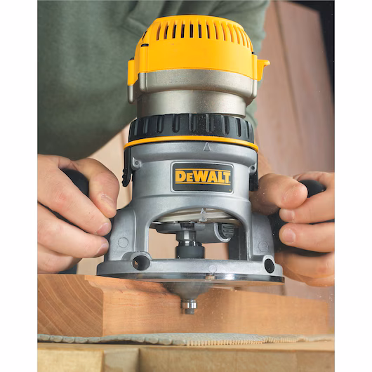 The DW618 2-1/4 HP EVS Fixed Base Router with Soft Start has a powerful motor for routing through tough hardwood at the user’s desired speed. Features precise depth adjustments and fast, easy motor pack removal for bit and base changes.