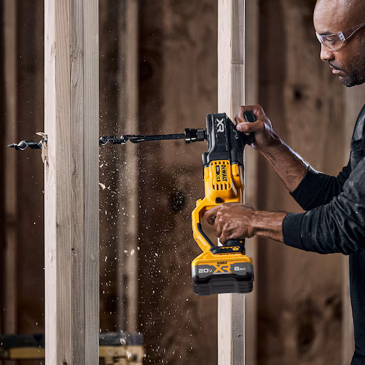- HELP MAXIMIZE PRODUCTIVITY – Drill up to 267 holes per charge in 1.5 in. thick Douglas Fir wood using 7/8 in. x 18 in. auger bit and DCB2108 battery (sold separately).